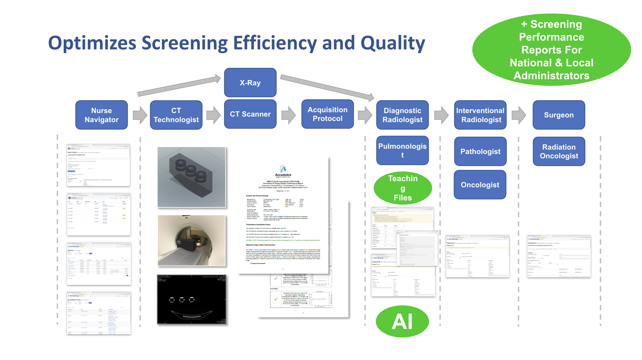 Provides numerous tools to track and optimize major areas of the CT lung cancer screening pipeline